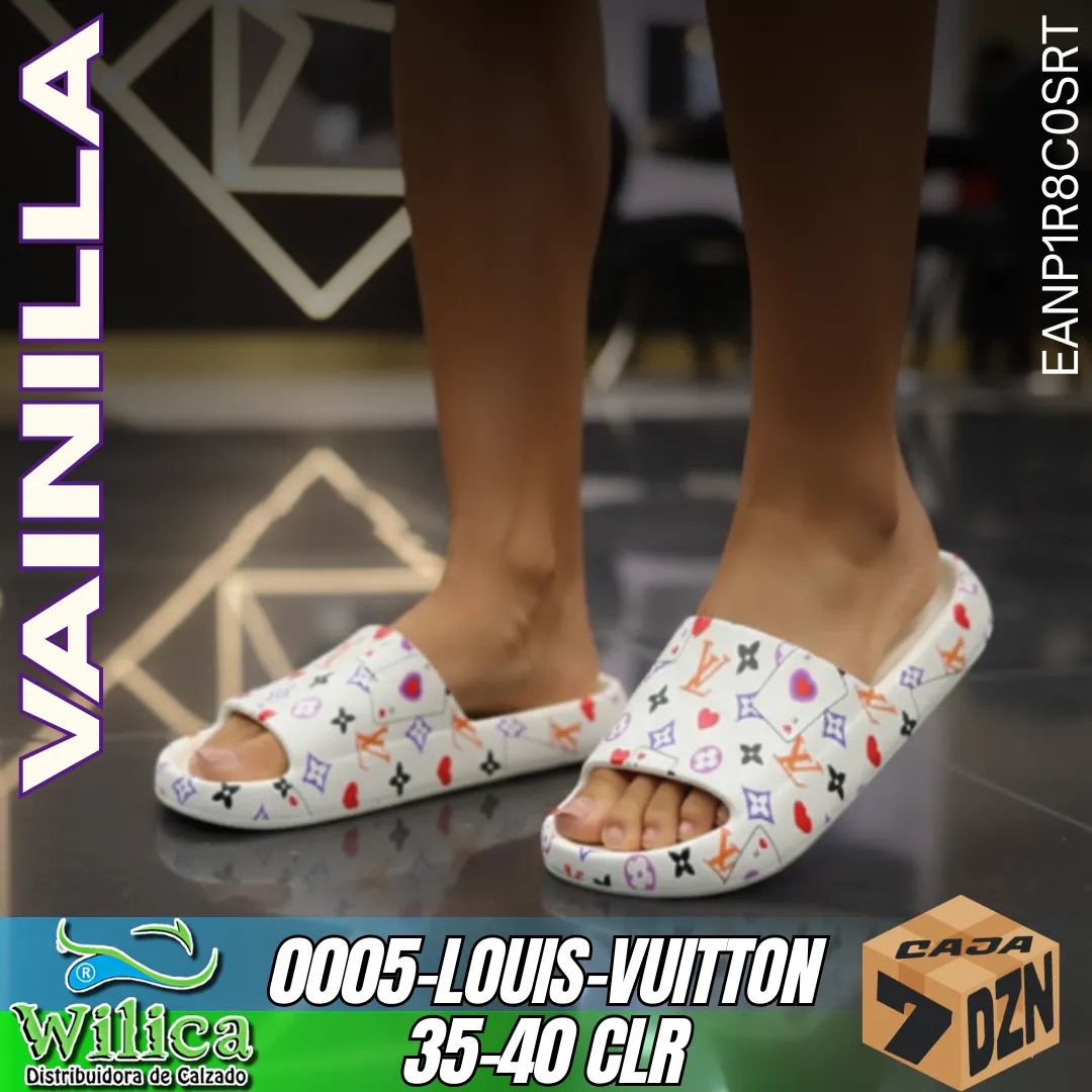 ✨ El modelo 0005-LOUIS-VUITTON presenta un diseño inspirado en patrones de lujo, con estampados coloridos y suela ligera. Ideal para quienes buscan comodidad y estilo sofisticado