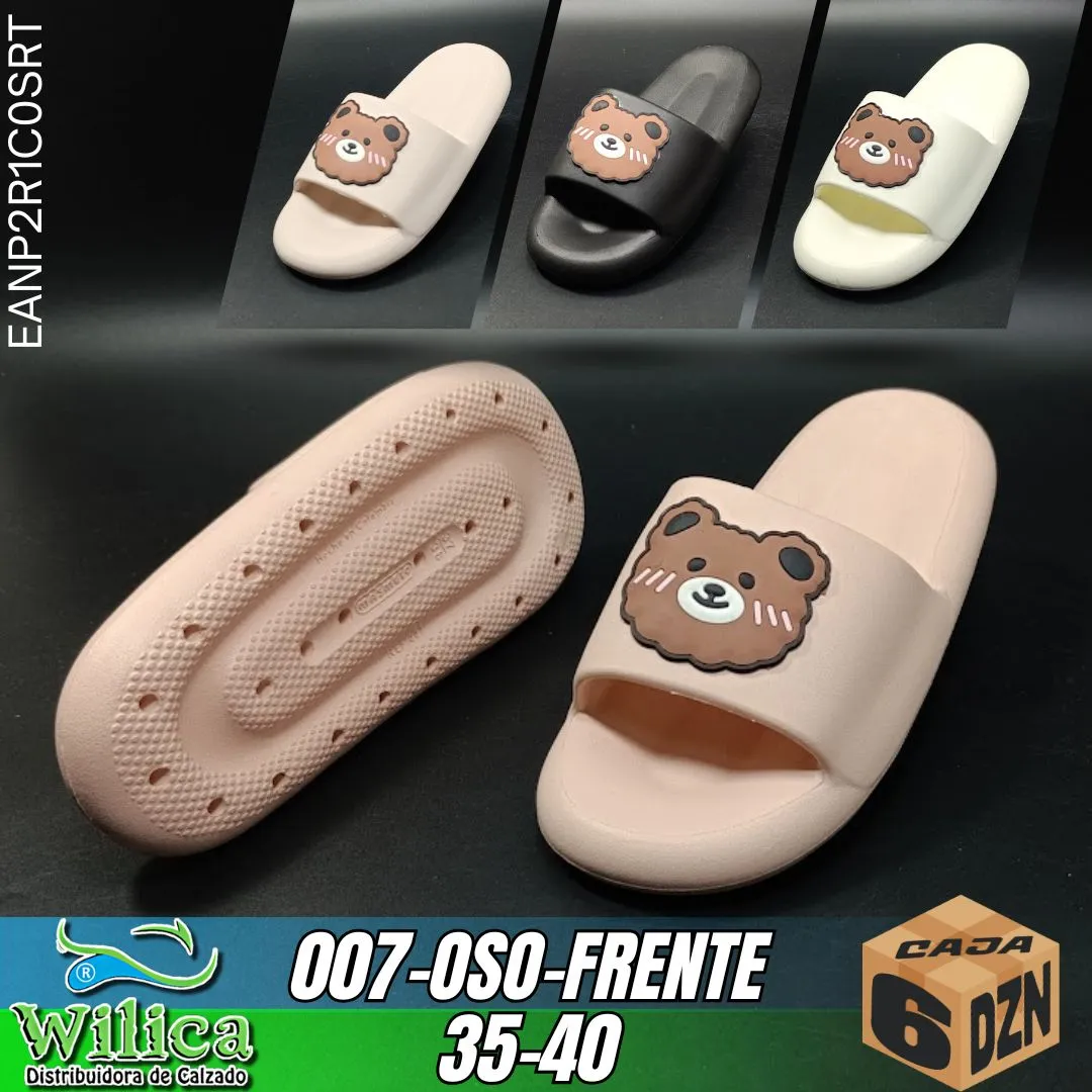 🐻La sandalia tipo slide 007-OSO-FRENTE ofrece un diseño frontal con carita de osito. Ideal para quienes buscan comodidad con ternura. Tallas del 35 al 40.
