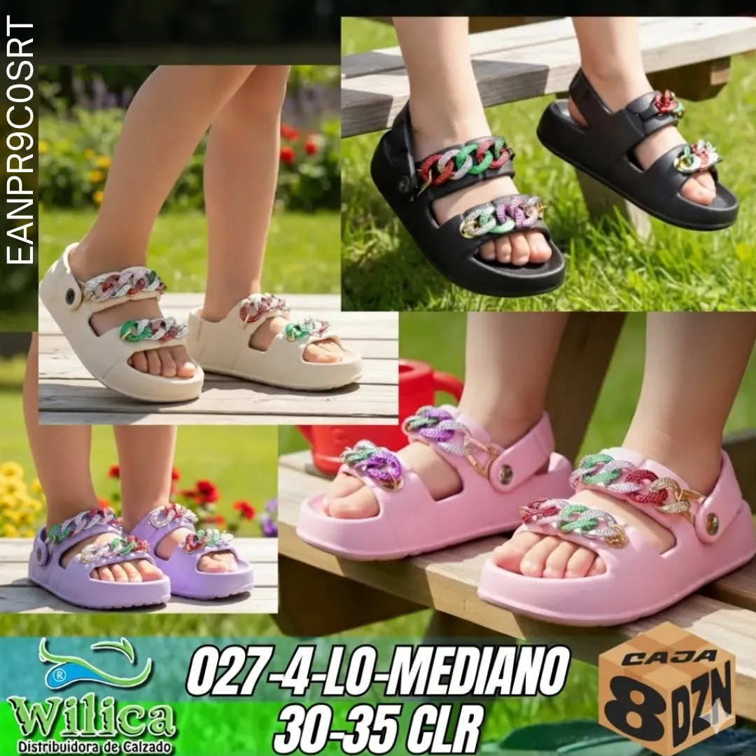 🔗El modelo 027-4-LO-MEDIANO presenta un diseño con cadena decorativa en colores vibrantes. Ideal para niños que buscan calzado cómodo con estilo moderno.