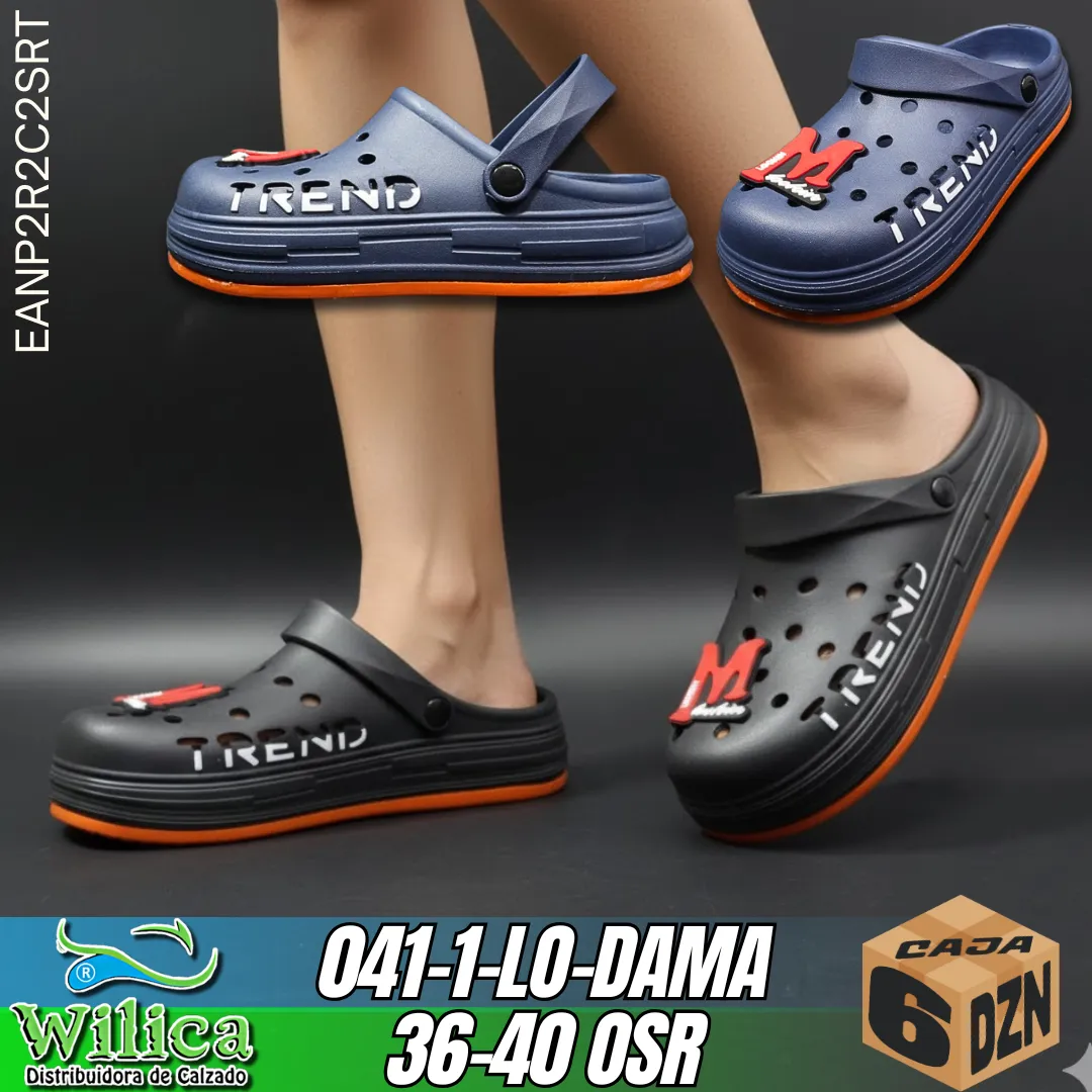 🔴El modelo 041-1-LO-DAMA presenta un diseño tipo clog con decoración “M” y texto TREND. Ideal para quienes buscan calzado cómodo con estilo urbano.
