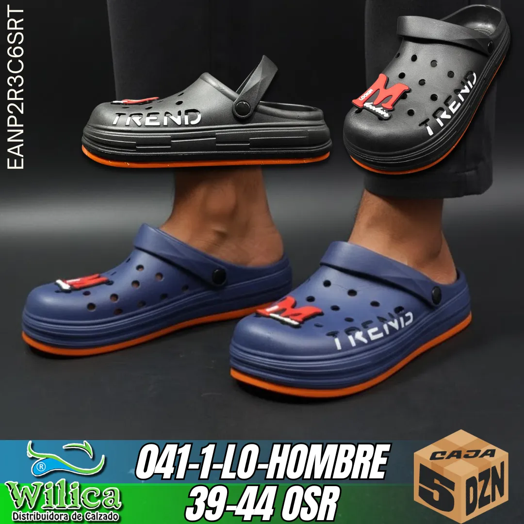 ⚫ El modelo 041-1-LO-HOMBRE presenta un diseño con decoración “M” y texto TREND. Ideal para quienes buscan calzado cómodo con estilo gráfico