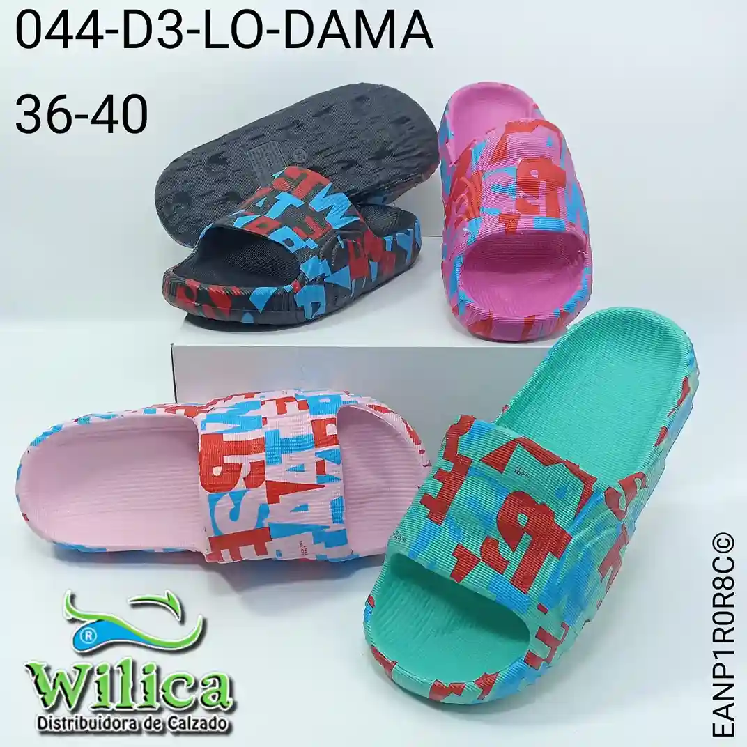 🔤El modelo 044-D3-LO-DAMA presenta un diseño decorado con letras abstractas en colores vibrantes. Ideal para quienes buscan calzado cómodo con estilo gráfico