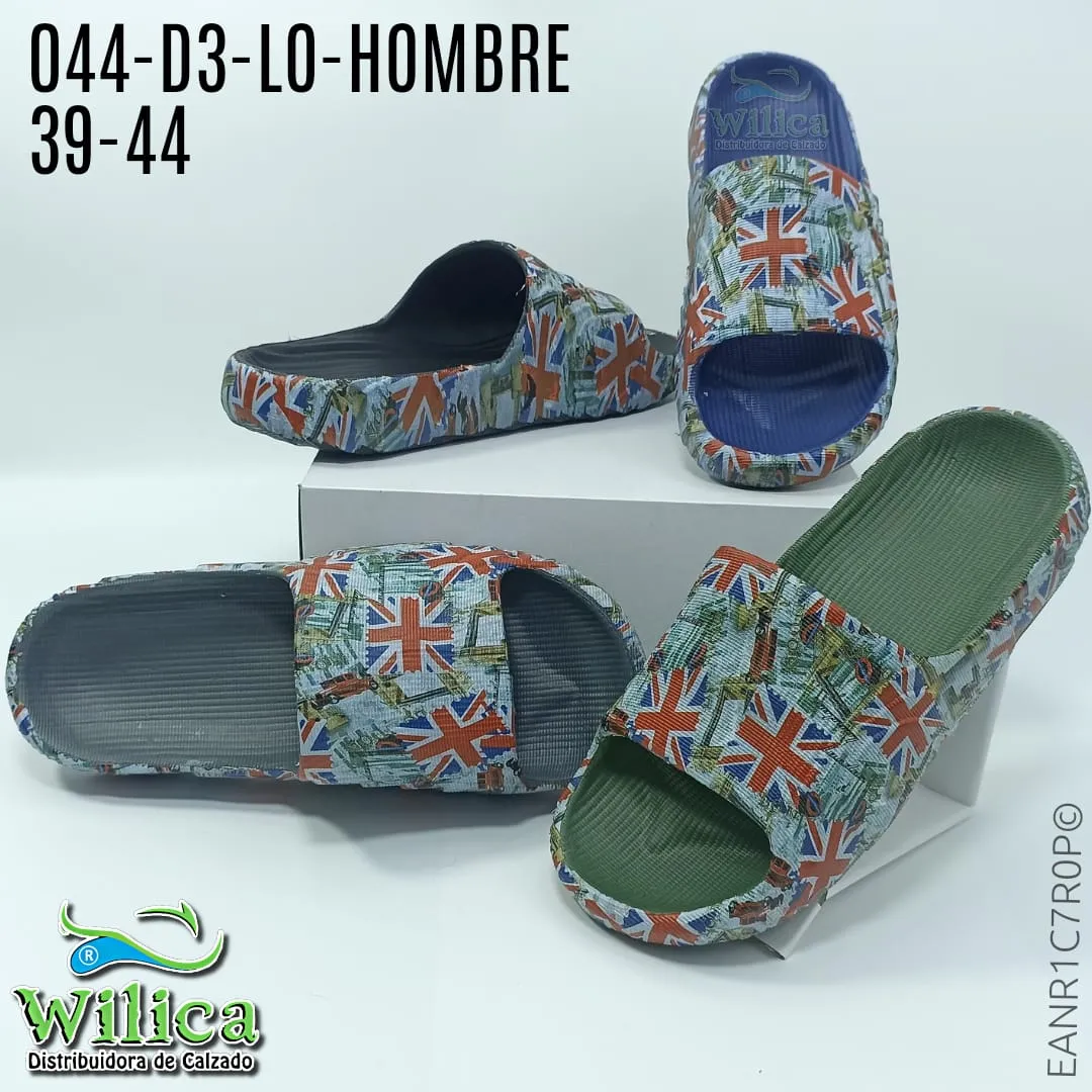 🇬🇧 El modelo 044-D3-LO-HOMBRE presenta un diseño decorado con bandera británica y paisajes urbanos. Ideal para quienes buscan calzado cómodo con estilo gráfico