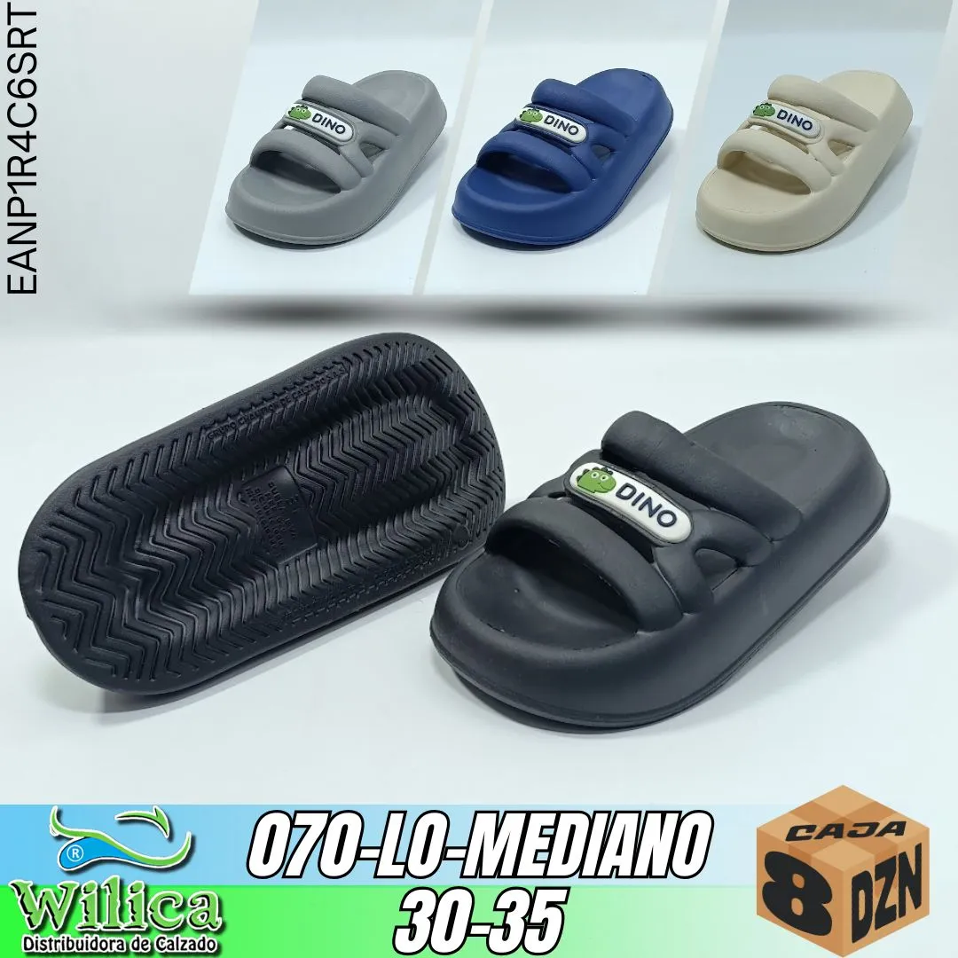 🐲El modelo 070-LO-MEDIANO presenta un diseño decorado con dinosaurio verde y texto “DINO” en la correa. Ideal para niños que buscan calzado cómodo con estilo prehistórico.