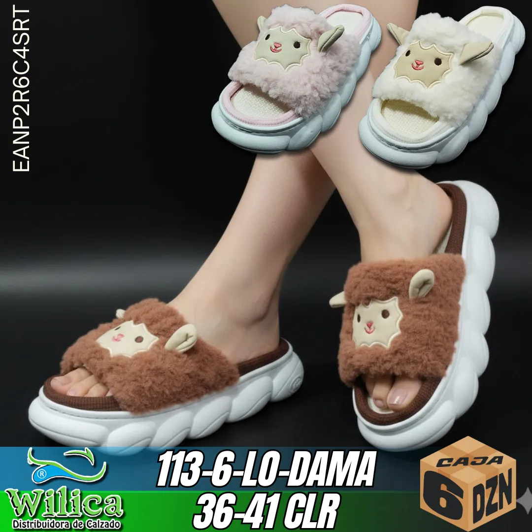 🐑 El modelo 113-6-LO-DAMA presenta un diseño con peluche decorado como carita de oveja. Ideal para quienes buscan calzado cómodo con estilo adorable.