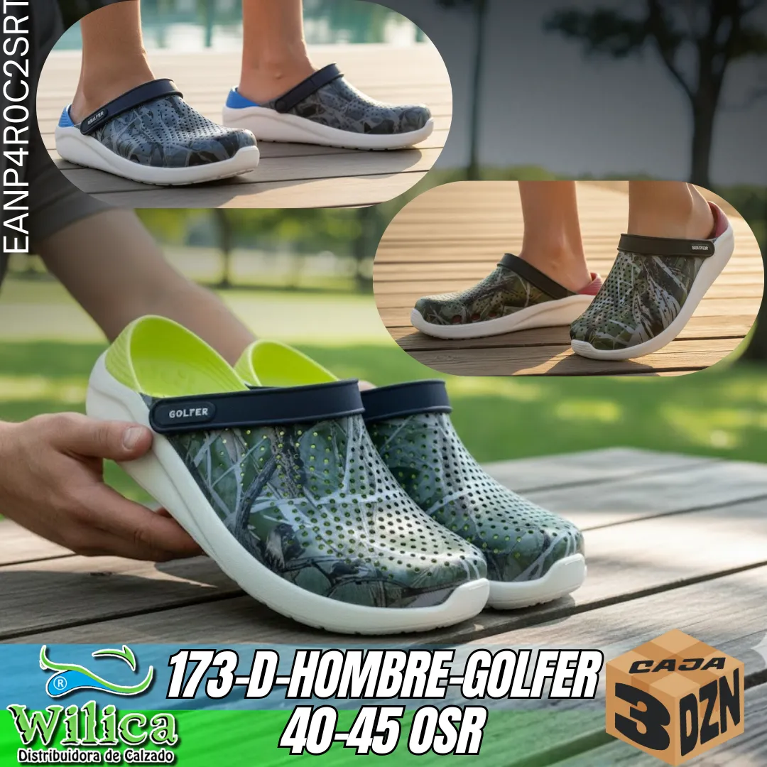 🟢 El modelo 173-D-HOMBRE-GOLFER presenta un diseño camuflado con correa ajustable y suela robusta. Ideal para quienes buscan comodidad y estilo casual.