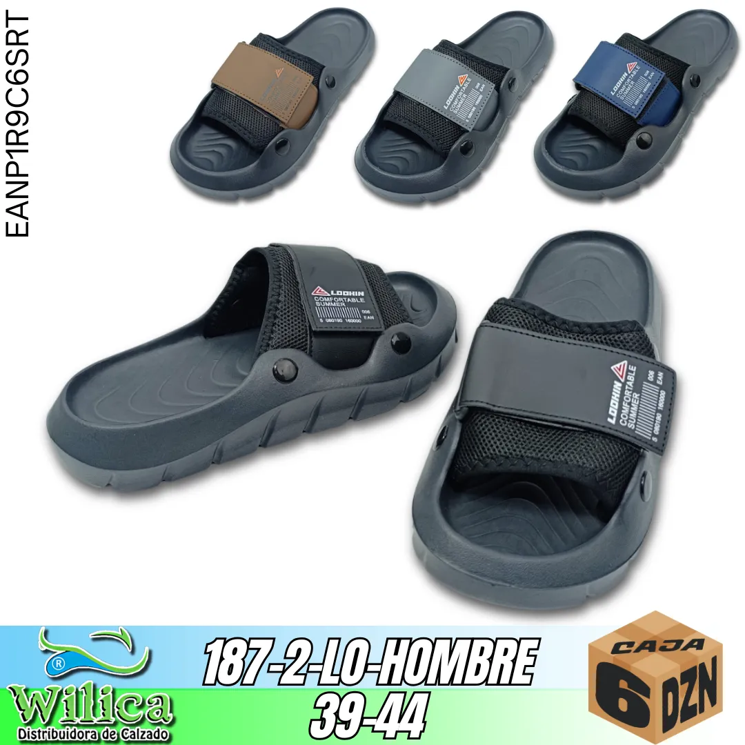 🧢 El modelo 187-2-LO-HOMBRE presenta un diseño con correa ancha. Ideal para quienes buscan calzado cómodo con estilo gráfico
