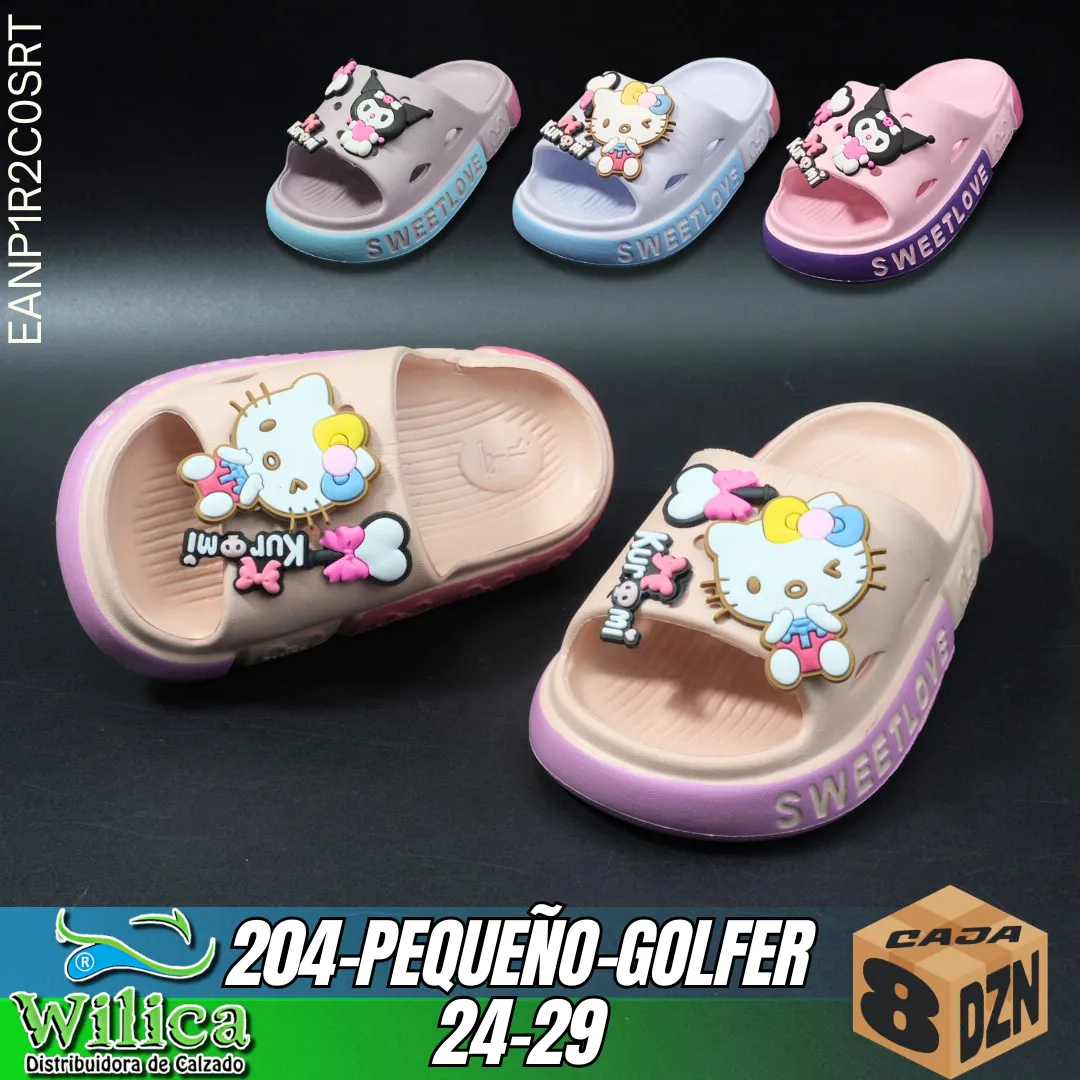 El modelo 204-PEQUEÑO-GOLFER presenta un diseño decorado con personajes gráficos y suela impresa. Ideal para quienes buscan calzado cómodo y temático. Tallas del 24 al 29.
