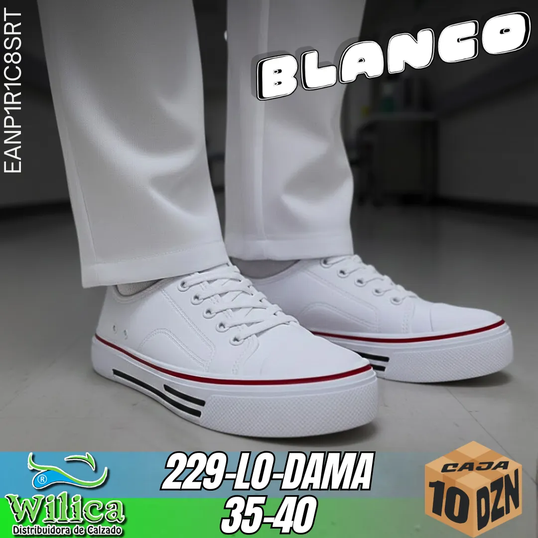 🌿 El modelo 229-LO-DAMA combina estilo clásico y comodidad en un diseño versátil. Con acabado en color blanco, detalles en rojo y negro en la suela, estos tenis ofrecen un look fresco y urbano para uso diario.
