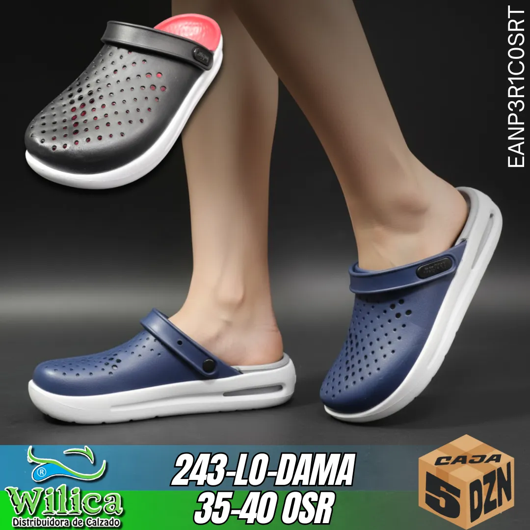 🧍♀️ El modelo 243-LO-DAMA presenta un diseño con ventilación lateral y correa trasera. Ideal para quienes buscan calzado cómodo con estilo deportivo.