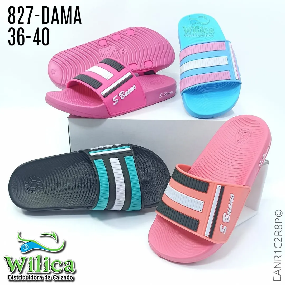 👡 El modelo 827-DAMA presenta un diseño con correa de tres franjas en contraste. Perfecto para mujeres que buscan frescura y estilo casual.