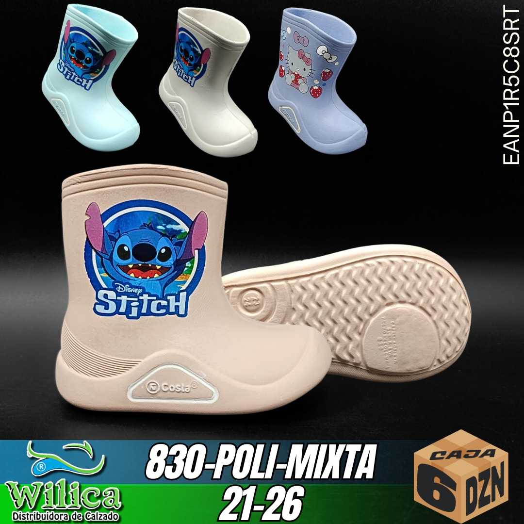 🐾El modelo 830-POLI-MIXTA presenta un diseño decorado con personajes animados. Ideal para niños que buscan calzado resistente con estilo tierno y colorido.