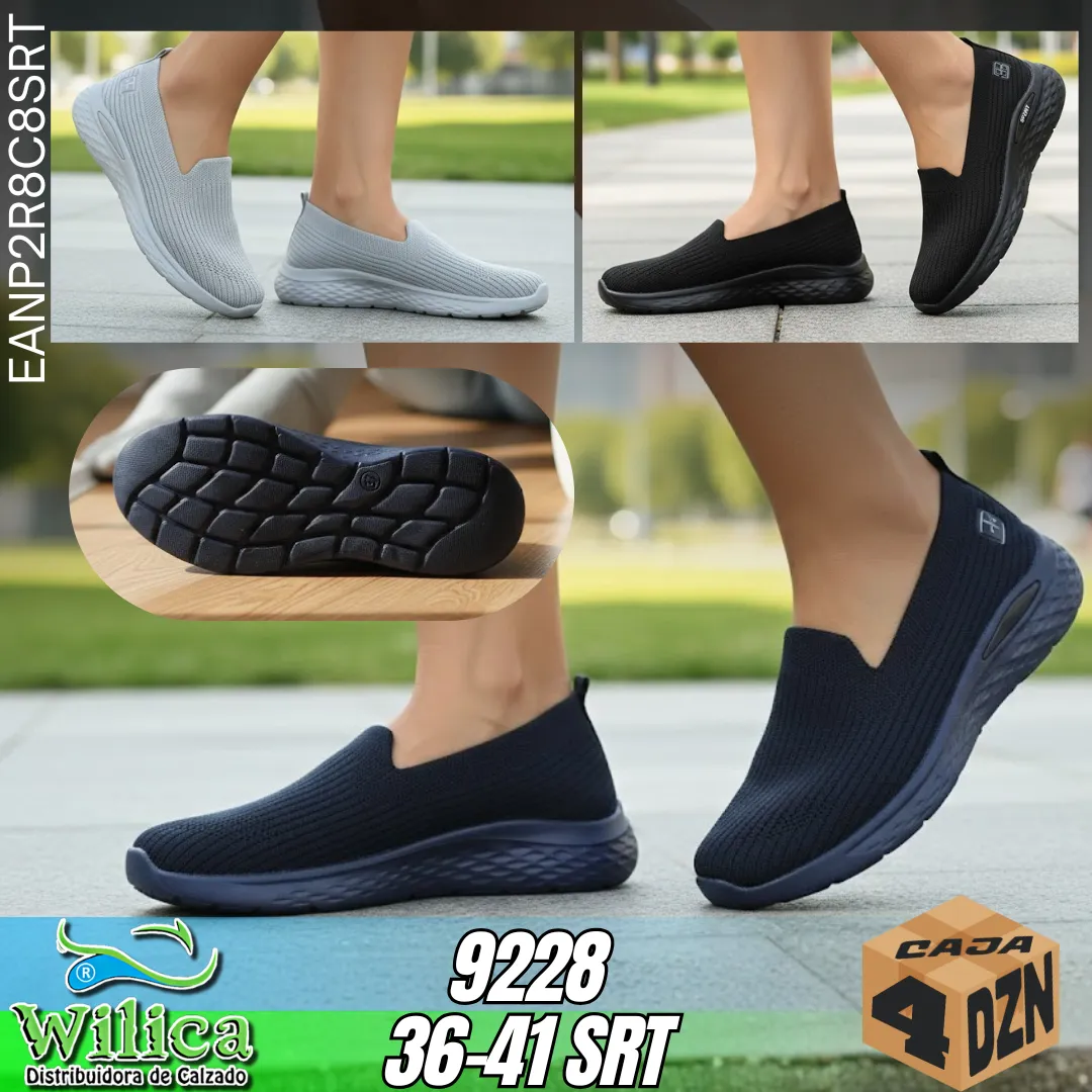 👟 El modelo 9228 presenta un diseño deportivo con tejido flexible y suela acolchada, acompañado de variedad de colores. Ideal para quienes buscan comodidad y estilo casual.