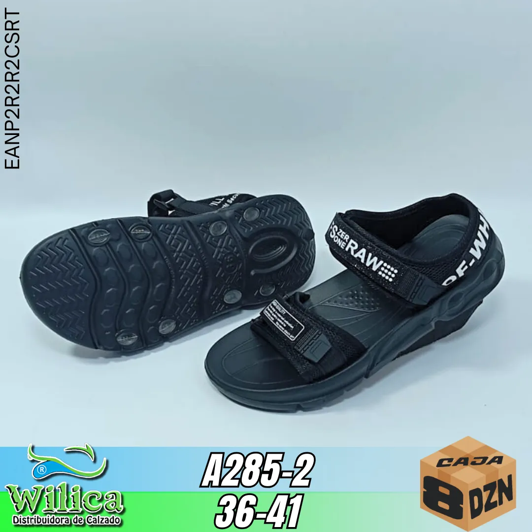 🖤 El modelo A285-2 presenta un diseño robusto con correa ajustable. Ideal para quienes buscan calzado cómodo con estética urbana.