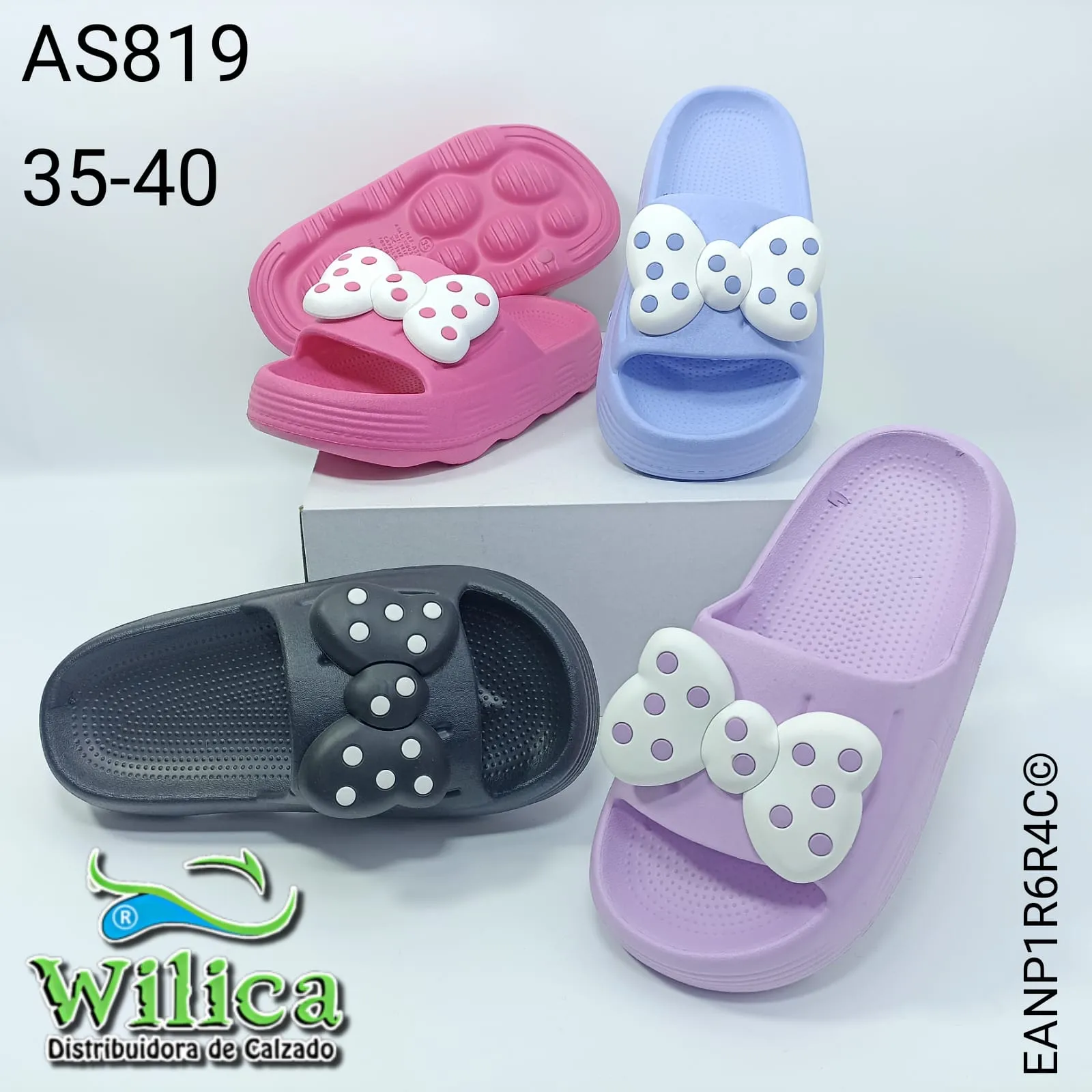 🎀 El modelo AS819 presenta un diseño decorado con moño acolchado de lunares. Ideal para quienes buscan calzado cómodo y femenino.