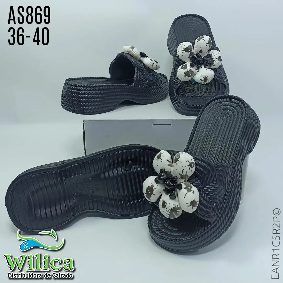 🖤El modelo AS869 presenta una flor decorativa con pétalos blancos y manchas negras. Ideal para quienes buscan calzado con estilo gráfico y moderno