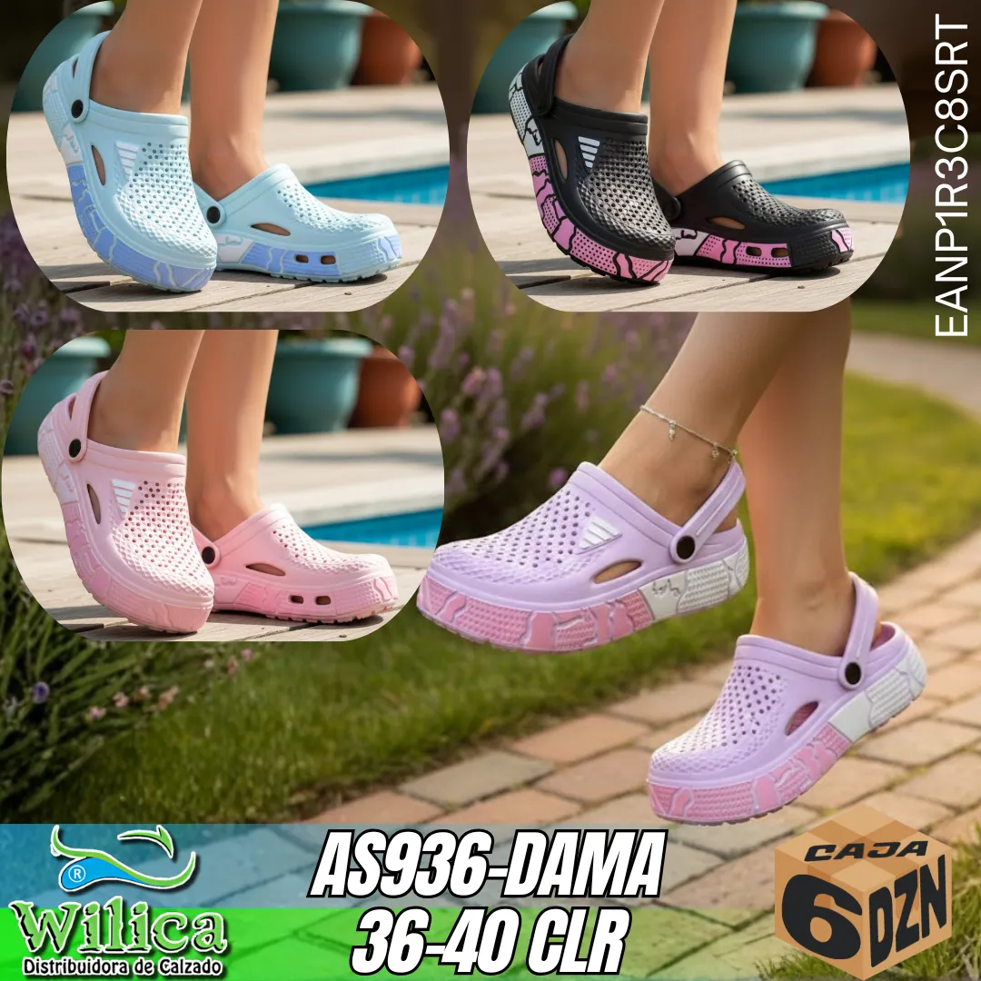 🌸 El modelo AS936-DAMA presenta un diseño con perforaciones decorativas y correa ajustable, acompañado de variedad de colores. Ideal para quienes buscan comodidad y estilo juvenil.