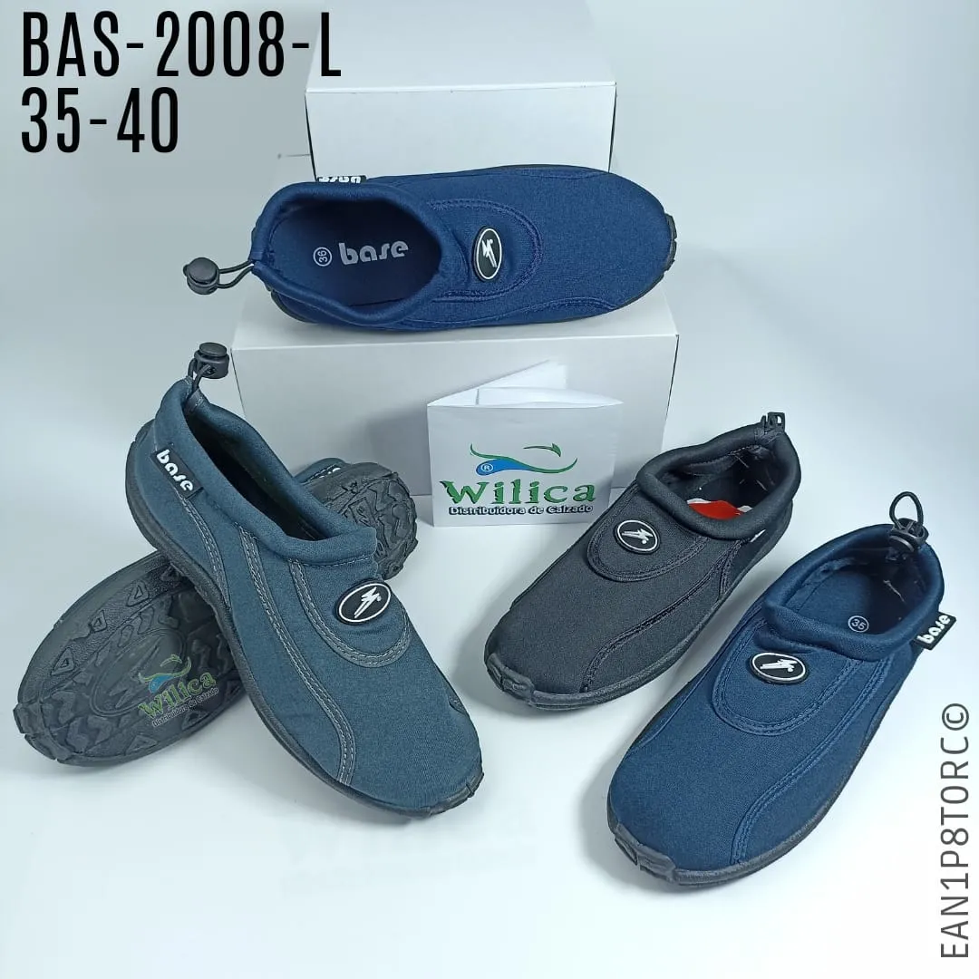 Zapatos acuáticos BAS-2208-L de WILICA, ideales para actividades al aire libre y acuáticas. Ligeros, cómodos y seguros, cuentan con suela antideslizante, material de secado rápido y práctico sistema de ajuste trasero. Disponibles en tallas del 35 al 40.