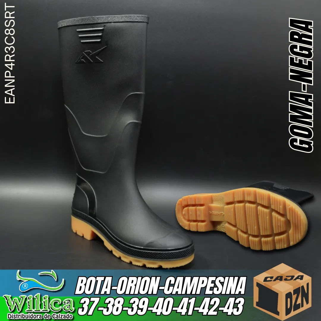 WILLICA presenta la referencia BOTA-ORION-CAMPESINA, pensada para quienes necesitan calzado impermeable y resistente. Su diseño sobrio y funcional la convierte en una opción confiable para trabajo rural.