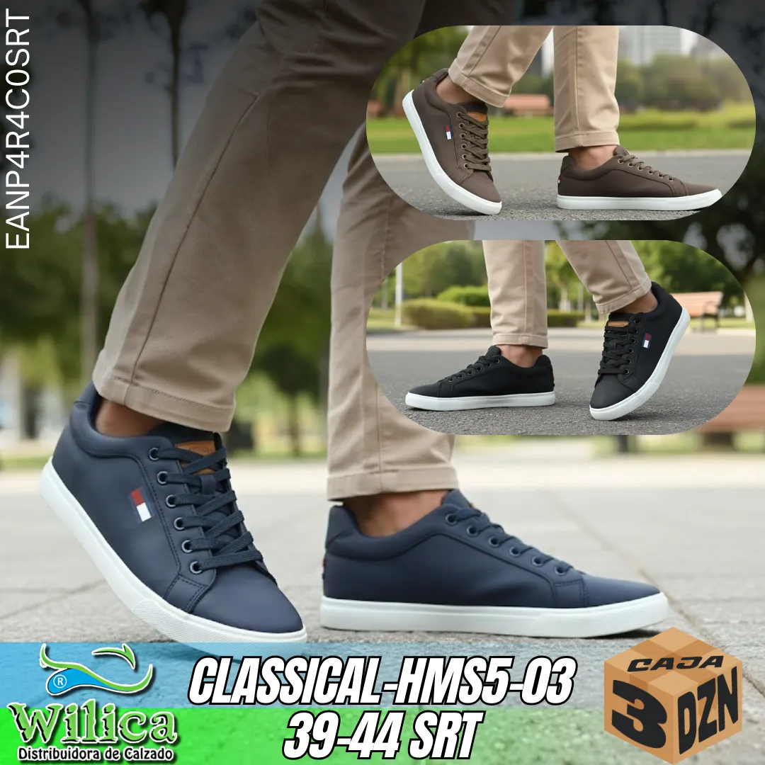 🚶 El modelo CLASSICAL-HMS5-03 presenta un diseño casual con suela blanca y detalles sobrios. Perfecto para quienes buscan estilo y confort en su rutina diaria.