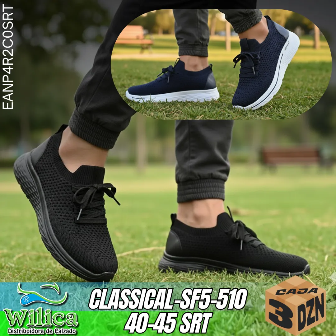 🏃 El modelo CLASSICAL-SF5-510 combina diseño moderno y funcionalidad con cordones y tejido transpirable. Ideal para quienes buscan rendimiento y estilo.