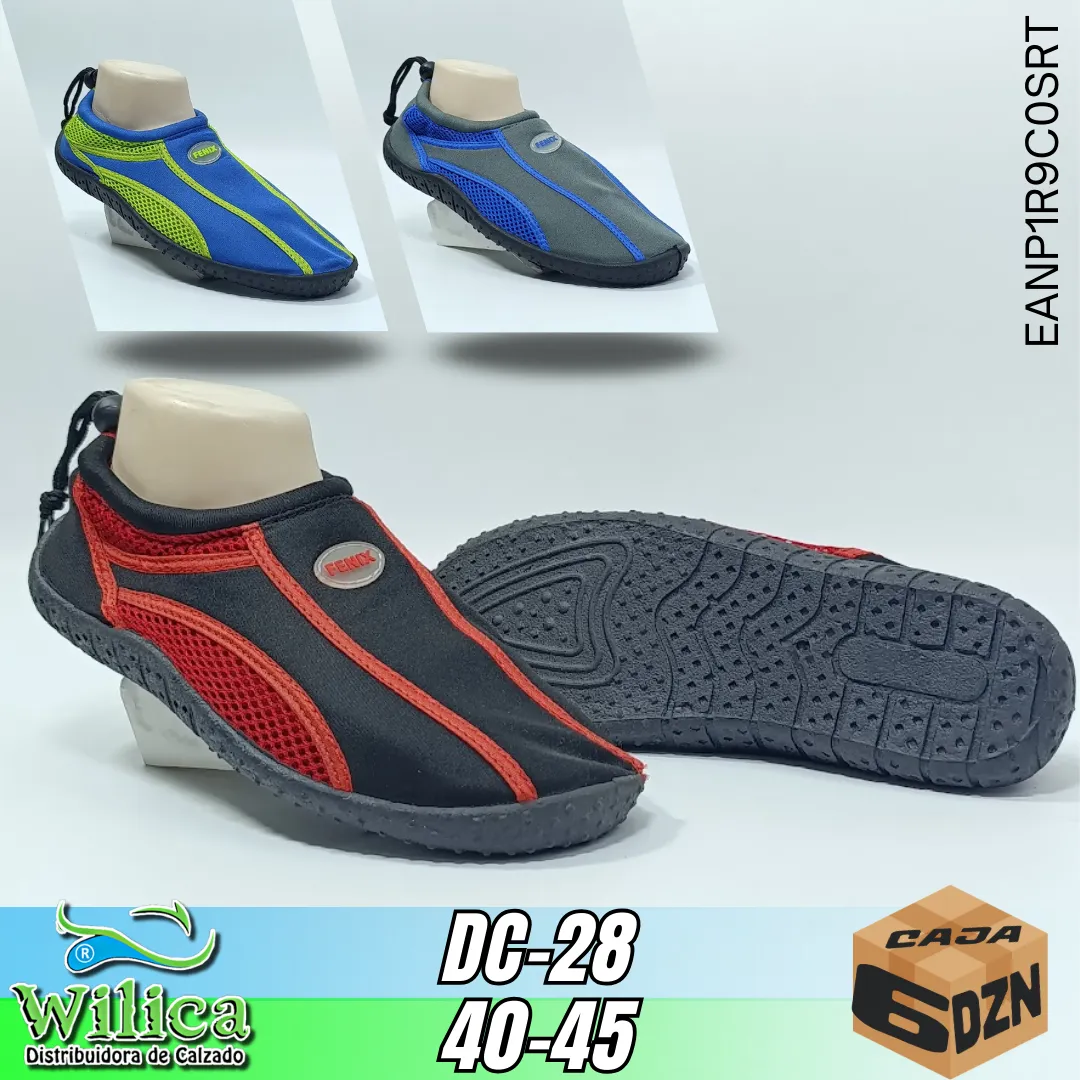 🌊 Los acuaticos DC-28 combinan estilo casual y funcionalidad acuática. Su diseño tipo slip-on con suela texturizada los hace ideales para uso diario o actividades en ambientes húmedos. Tallas del 40 al 45.