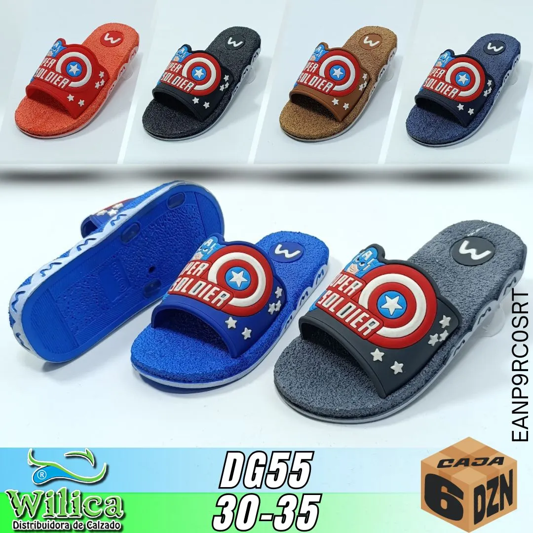 🛡️ El modelo DG55 presenta un diseño tipo con escudo. Ideal para niños que buscan calzado cómodo con estilo heroico y gráfico.