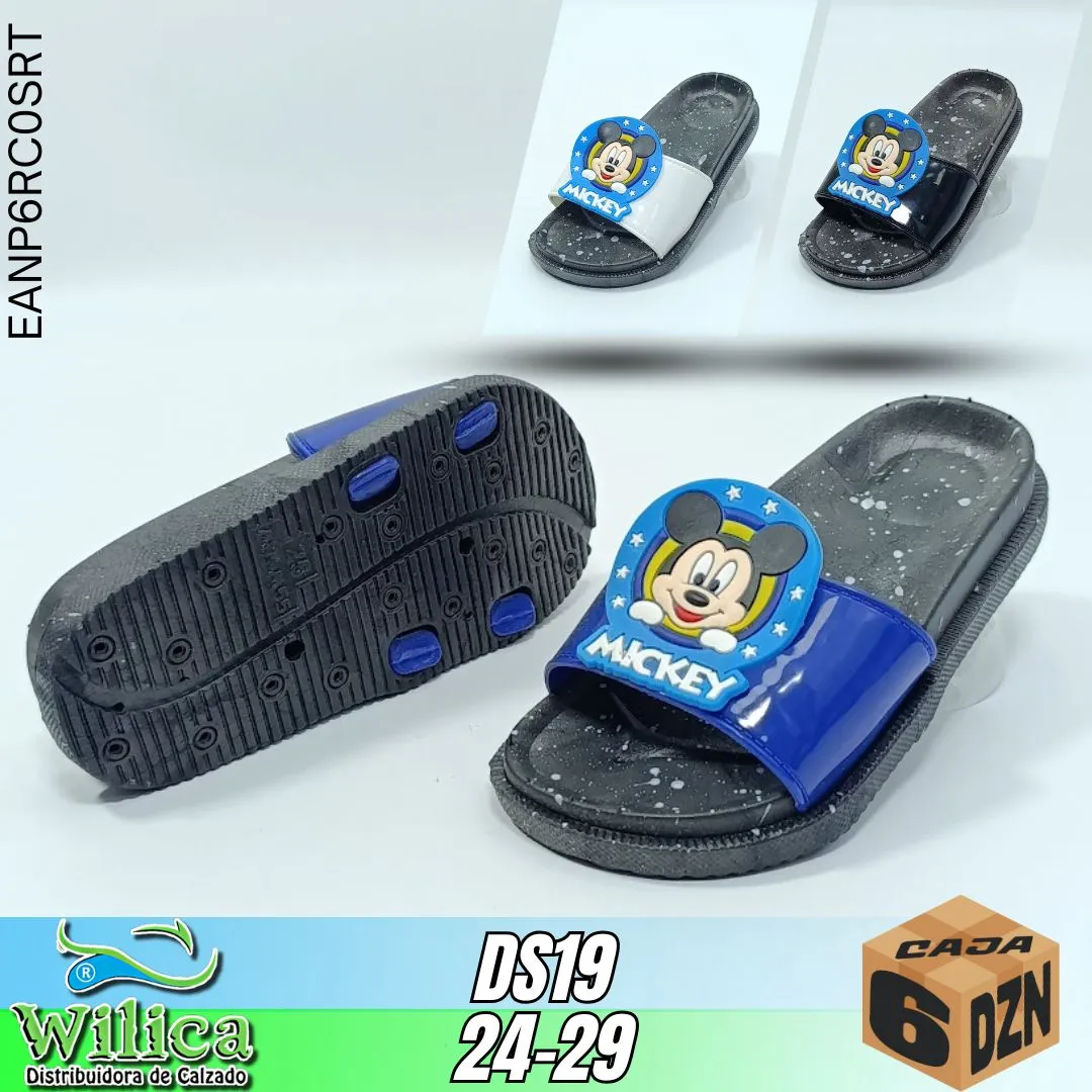 🐭 El modelo DS19 presenta un diseño decorado con cara de personaje animado y suela con inserciones de color. Ideal para niños que buscan calzado cómodo con estilo moderno y divertido.