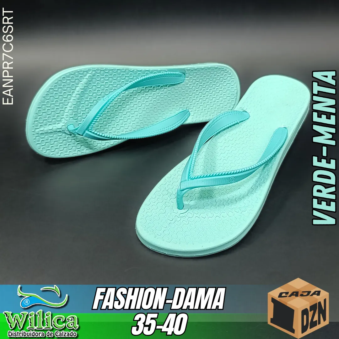 🌿 El modelo FASHION-DAMA presenta un diseño clásico en tono verde menta con correa sencilla. Ideal para quienes buscan calzado fresco y funcional.