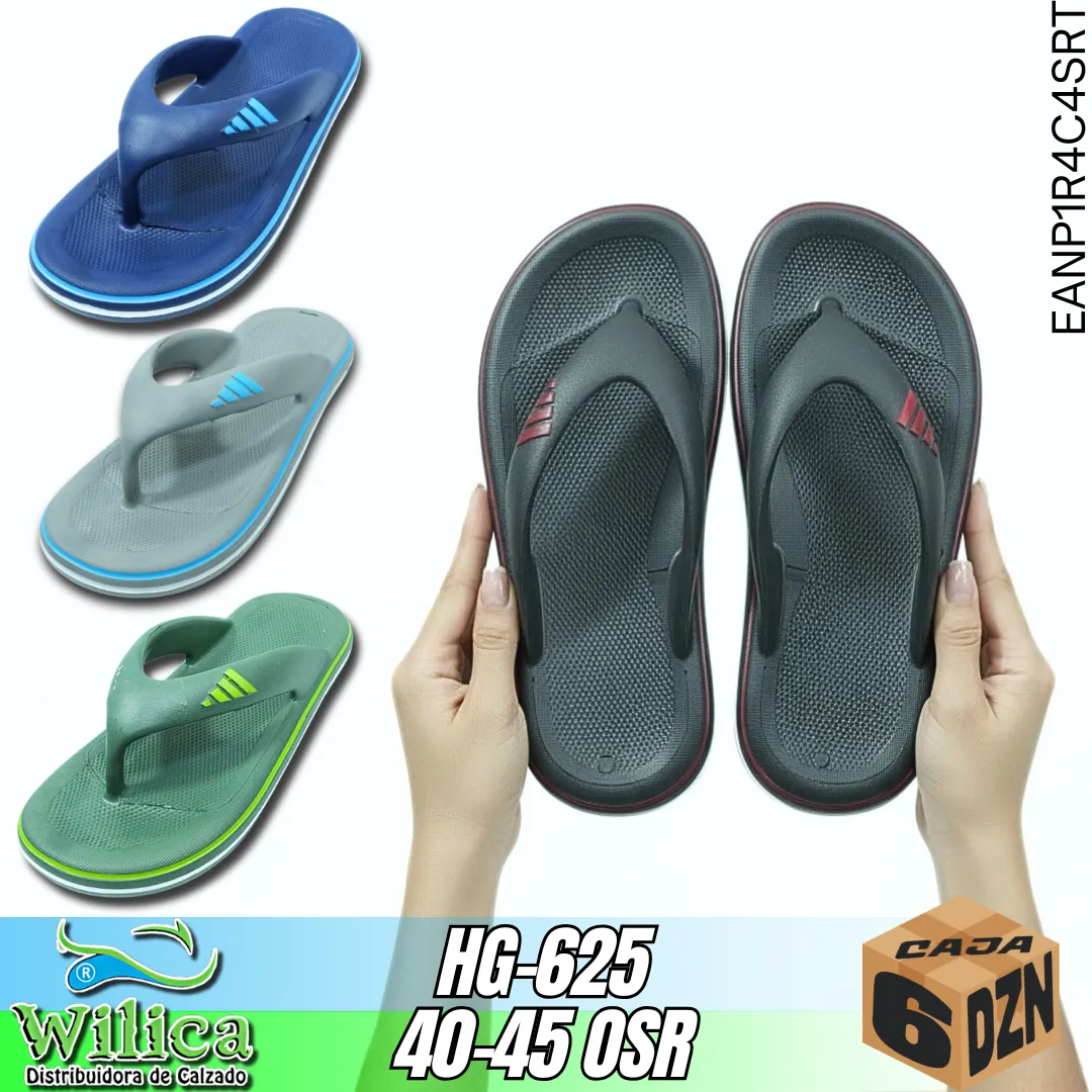 👟 El modelo HG-625 presenta un diseño con correa de tres franjas diagonales y plantilla texturizada. Ideal para quienes buscan comodidad y estilo deportivo.