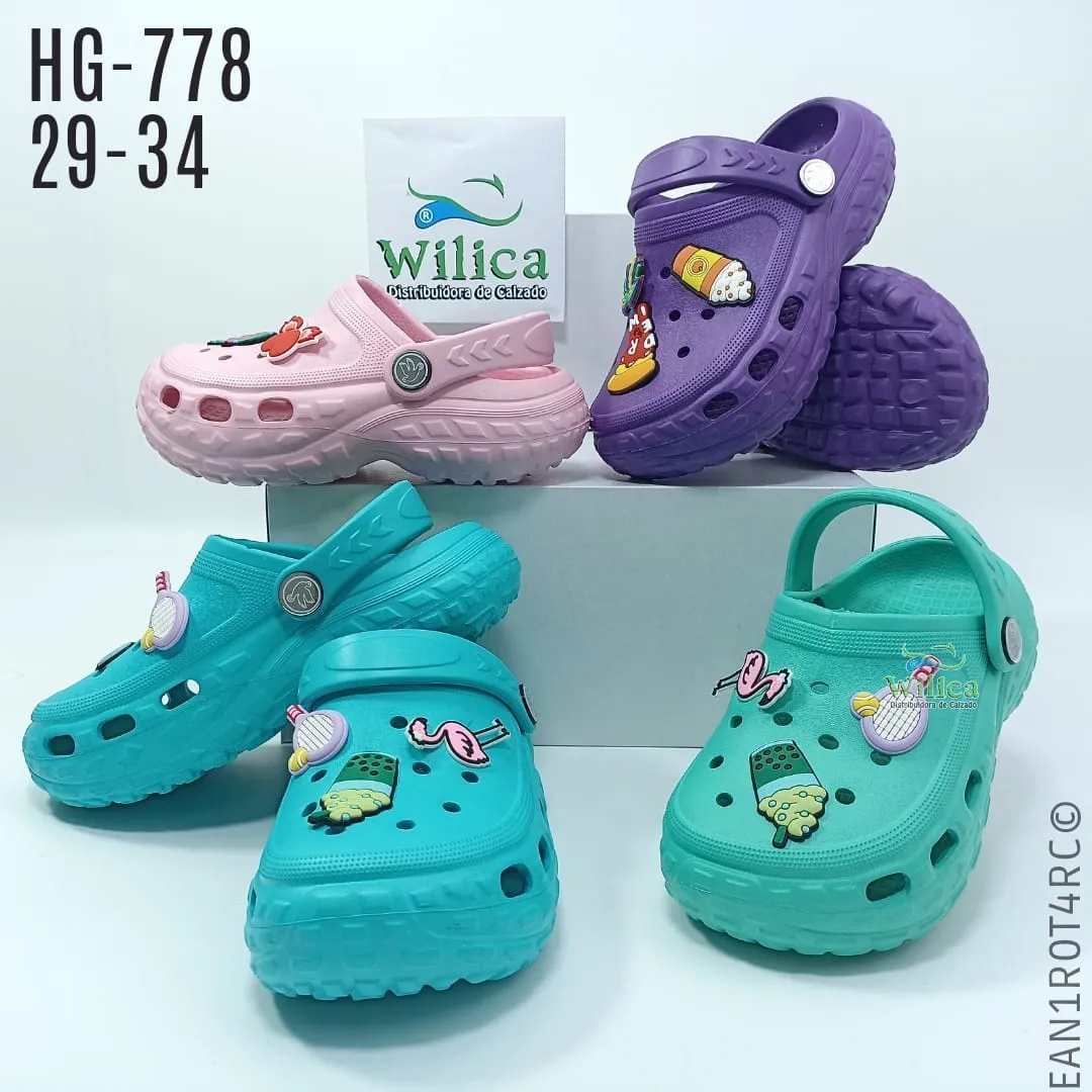 🍦 Los zuecos infantiles HG-778 de WILICA combinan color y diversión en un diseño decorado con figuras como helados, flamingos y otros personajes. Ideales para niñas y niños que disfrutan de lo gráfico y lo cómodo. Tallas del 29 al 34
