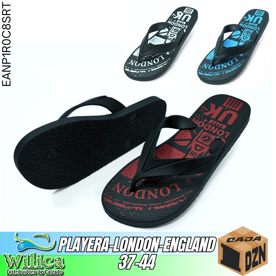 La referencia PLAYERA-LONDON-ENGLAND está pensada para uso casual. Su plantilla estampada y suela firme la convierten en una opción moderna y llamativa.