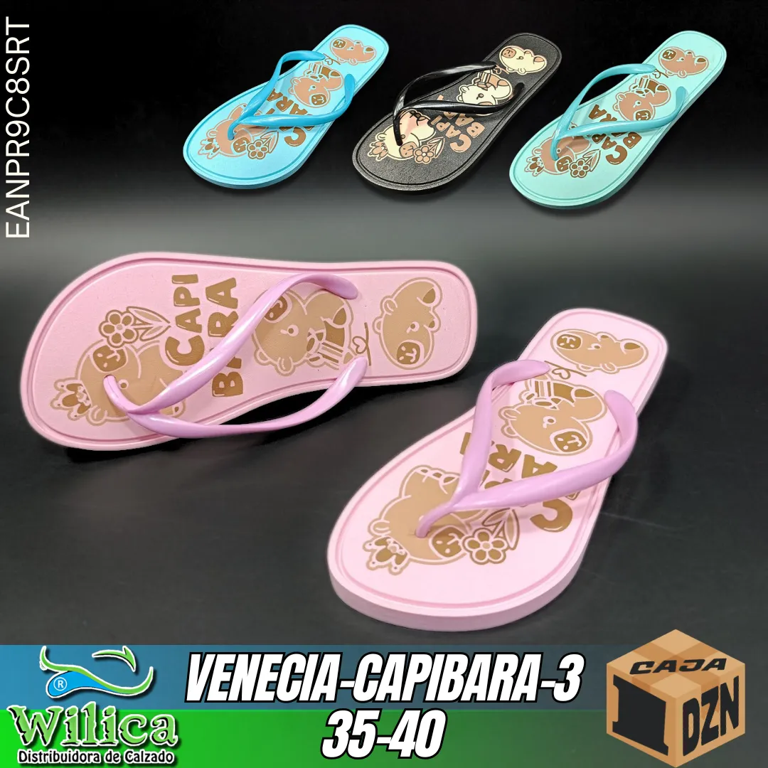 La referencia VENECIA-CAPIBARA-3 está pensada para uso casual. Su plantilla estampada y suela firme la convierten en una opción funcional y divertida.
